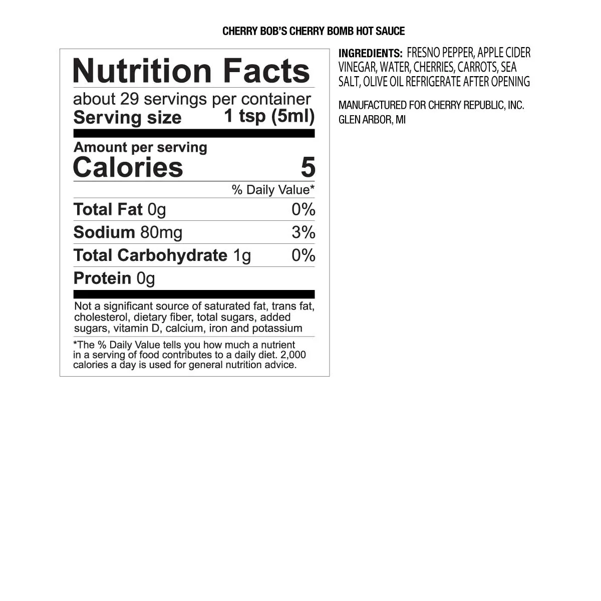 Cherry Bob's Cherry Bomb Hot Sauce gets its kick from Fresno chili peppers. This small-batch cherry hot sauce is kept simple - crafted with only seven ingredients.