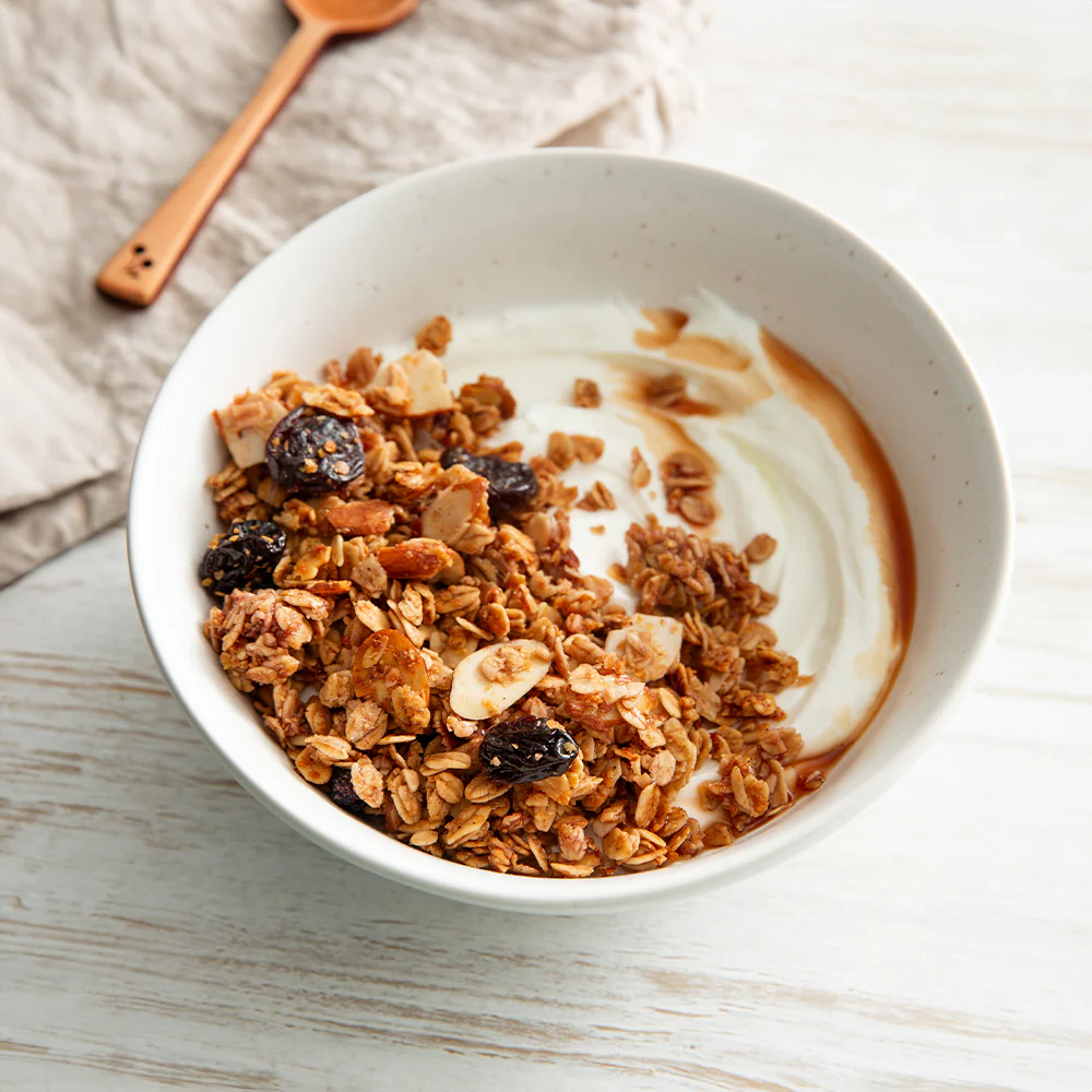 Our Crunchy Maple Granola is baked in small batches to ensure the highest quality and freshest taste. A delicious blend of cherries, dried fruits, walnuts, and perfectly toasted oats. This wholesome granola makes a fantastic snack straight from the bag or sprinkled over cereal or yogurt for the perfect breakfast.