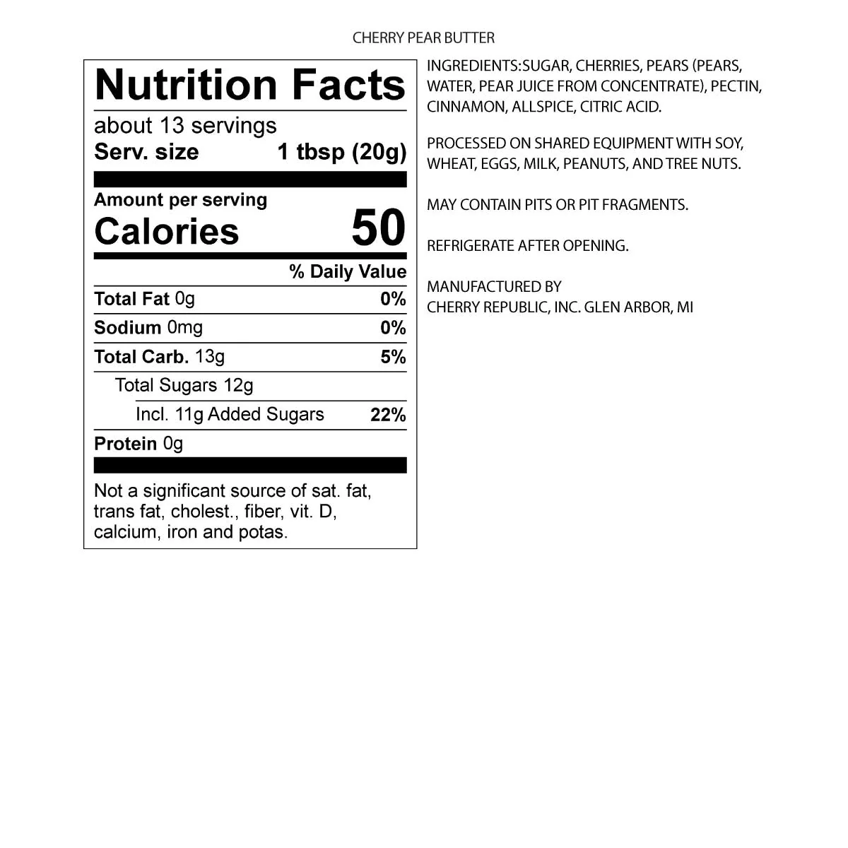 A perfect topping for toast or other warm breads, the light spices of our Cherry Pear Butter will transport you to autumn in Northern Michigan. Perfect for baking homemade Danish pastries or thumbprint jam cookies.